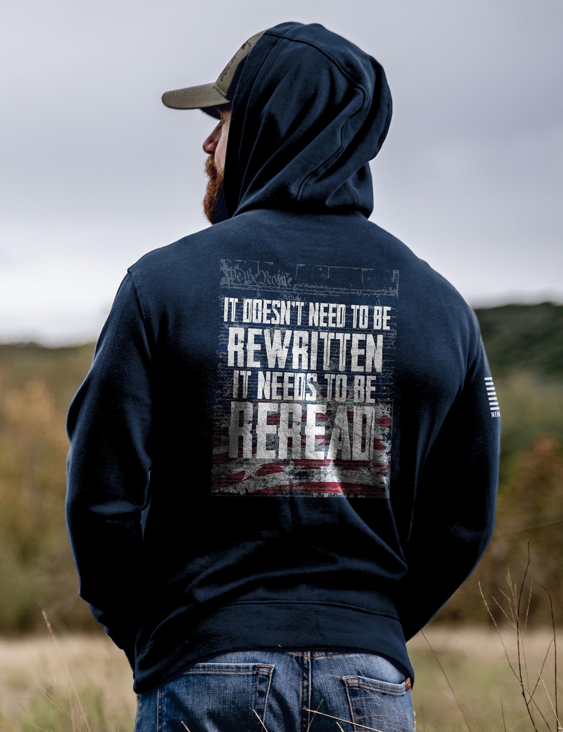 Nine Line REREAD Not ReWritten Hoodie for Men Patriotic American Flag Hoodie, Veteran Owned American Made USA Freedom Apparel