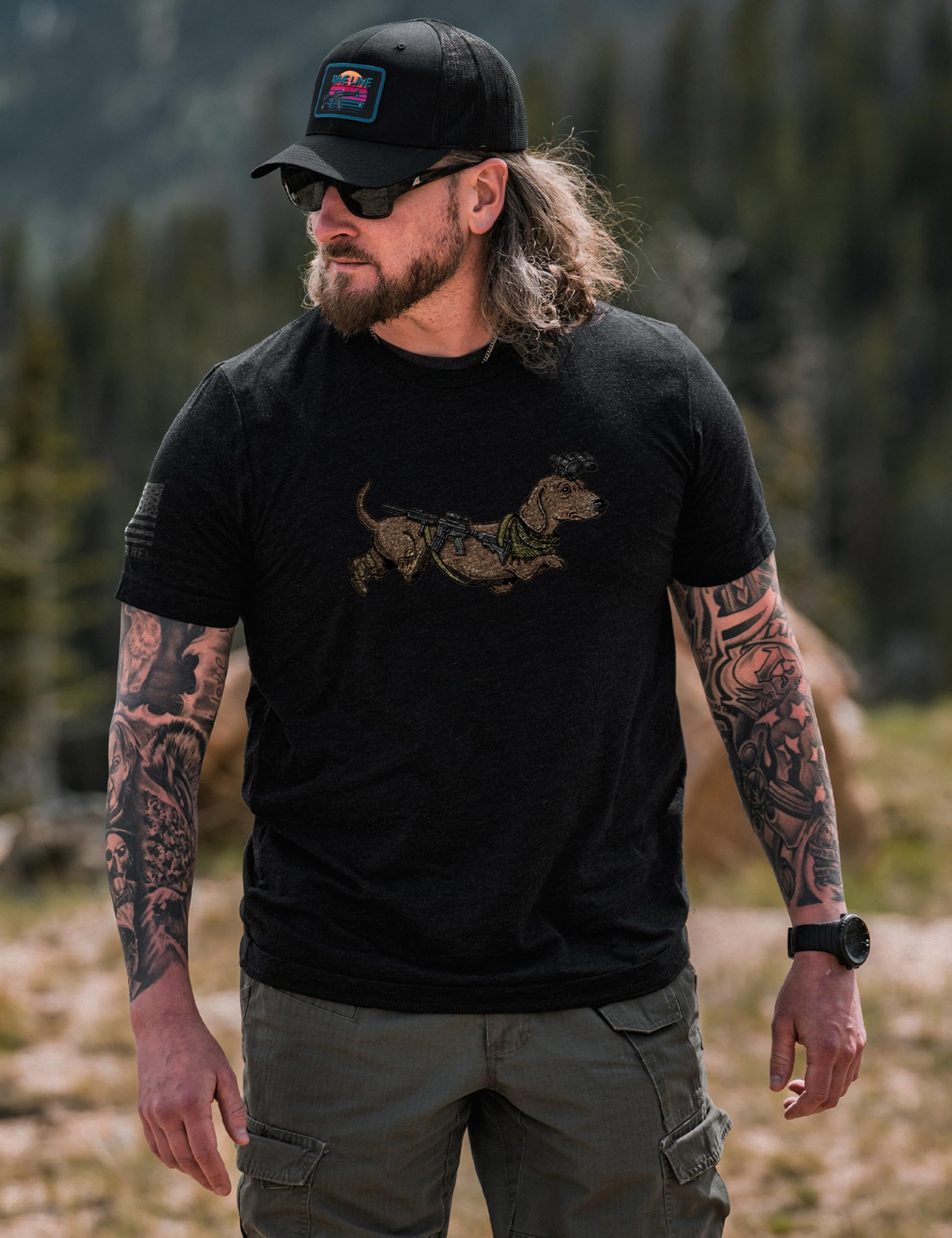 - Hound With The Rounds: This tactical dachshund is locked and loaded with rifle, boots, scarf, NVG and ready for action! A must-have for fans of funny dog shirts, dachshund lovers, and military humor